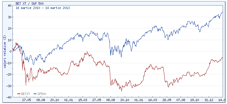 BET-XT vs S&P 500 - 12 luni BET-XT vs S&P 500 - 36 luni