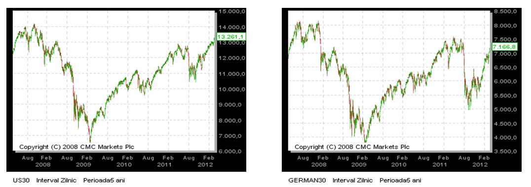 Trebuie sa facem o remarca suplimentara pentru piata germana, care a reusit in ciuda problemelor nesfarsite din zona euro, sa recupereze mare parte din pierderea ultimilor ani. In acelasi timp piata americana traverseaza cel mai pronuntat trend de revenire – dovada indubitabila a fortei economice americane si a suprematiei acestei economii la nivel global.