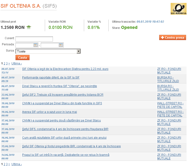 Stirile in Prime Analyzer curg constant pe parcursul zilei. In plus, ele sunt clasificate si in functie de simbolul / simbolurile pe care le afecteaza, chiar daca in titlul sau in continutul stirii nu se specifica simbolul companiei respective. Se pot gasi stiri pana inclusiv in anul 2003.